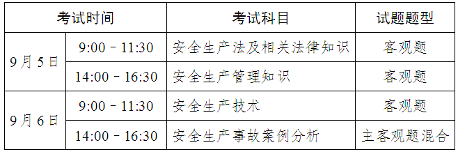 凡符合上述報名條件,并于2002年9月3日前已評聘高級專業(yè)技術(shù)職務(wù),并從事安全生產(chǎn)相關(guān)業(yè)務(wù)工作滿10年的專業(yè)人員,可免試安全生產(chǎn)管理知識和安全生產(chǎn)技術(shù)2個科目,只參加安全生產(chǎn)法及相關(guān)法律知識和安全生產(chǎn)事故案例分析2個科目的考試。