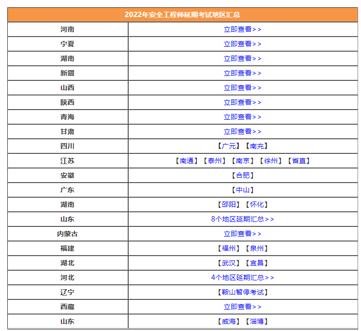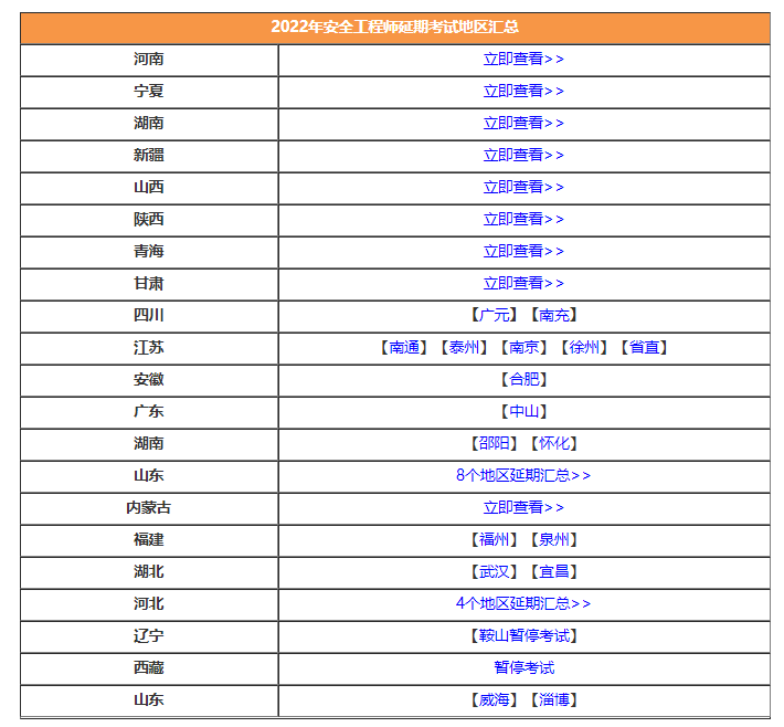 2022年安全工程師補(bǔ)考和取消考試地區(qū),立即查看>>