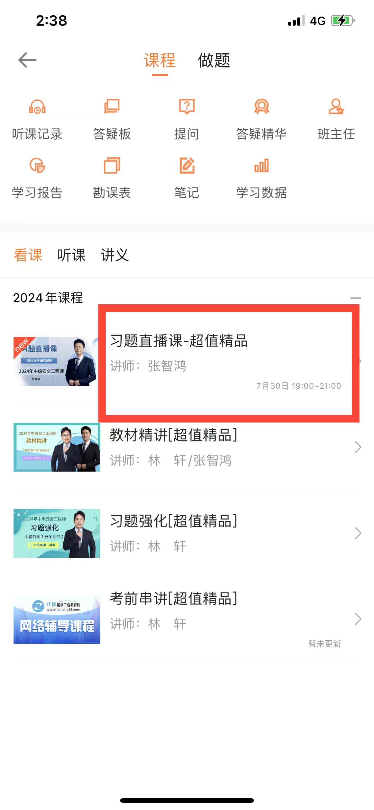 2、找到建筑施工習題直播課直播入口。