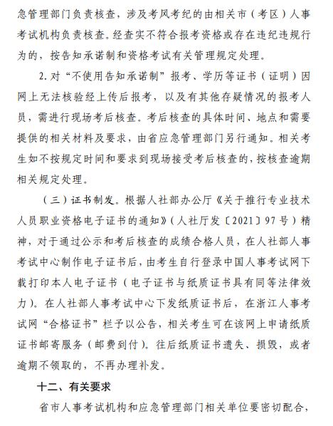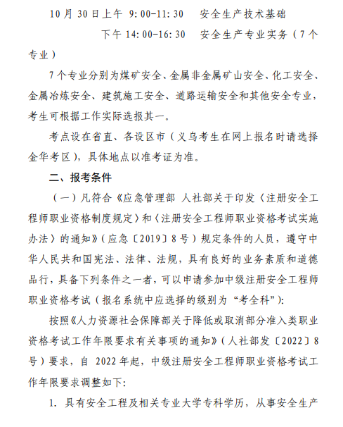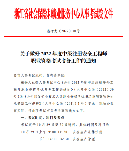 浙江人事考試網發(fā)布了《關于做好2022年度中級注冊安全工程師職業(yè)資格考試考務工作的通知》;