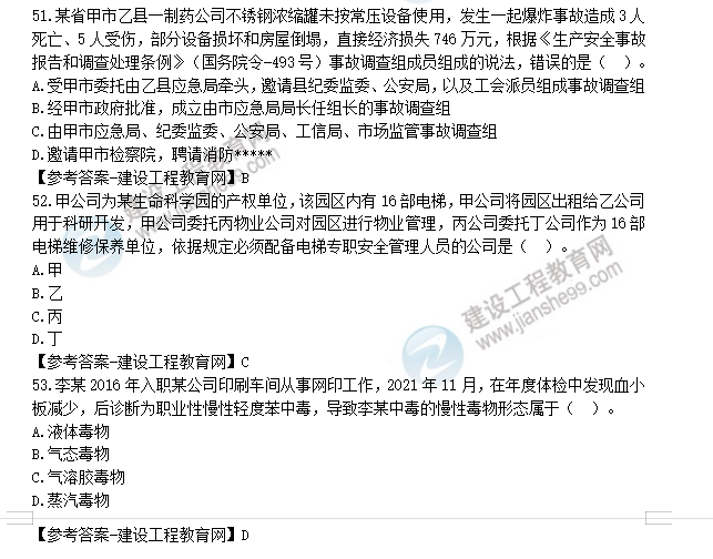 2022年安全工程師考試于10月29日、30日舉行??荚囘^后,廣大考生最關(guān)心的問題莫過于“2022年安全工程師生產(chǎn)管理試題及答案解析51-60題”了,建設(shè)工程教育網(wǎng)考后將會(huì)根據(jù)學(xué)員反饋,及時(shí)匯總2022安全考試生產(chǎn)管理試題相關(guān)信息分享給大家,并且會(huì)及時(shí)做出答案解析,希望能為廣大安全考生朋友帶來幫助。