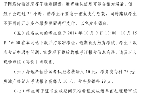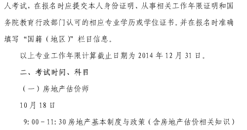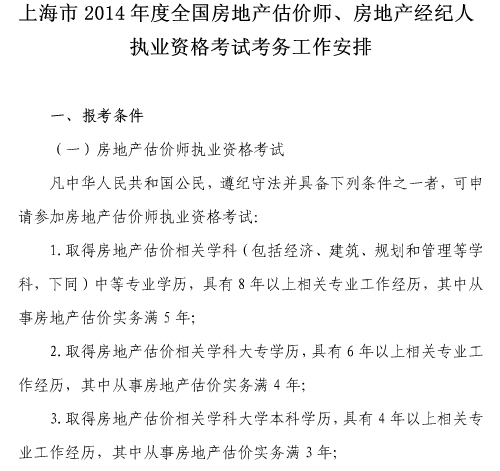 2014年上海房地產(chǎn)估價師考試報名考務文件