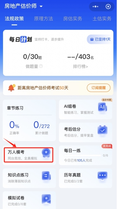 方法2:直接使用微信掃下方二維碼,進入房估萬人??纪ǖ?,選擇要參加的科目進行模考。