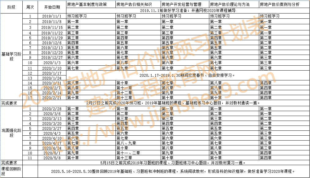 2、已報網(wǎng)校2020年房地產(chǎn)估價師輔導高效實驗/無憂定制班的同學,將由班主任老師根據(jù)您的信息反饋及學習時間制定更詳盡的計劃表,如與本表不一致,請以班主任老師制定的學習計劃為準。