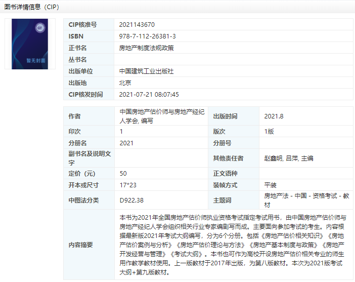 2021年房地產(chǎn)估價(jià)師考生注意啦!小編從中央宣傳部出版物數(shù)據(jù)中心了解到,2021年房地產(chǎn)估價(jià)師考試教材仍然分為5本: