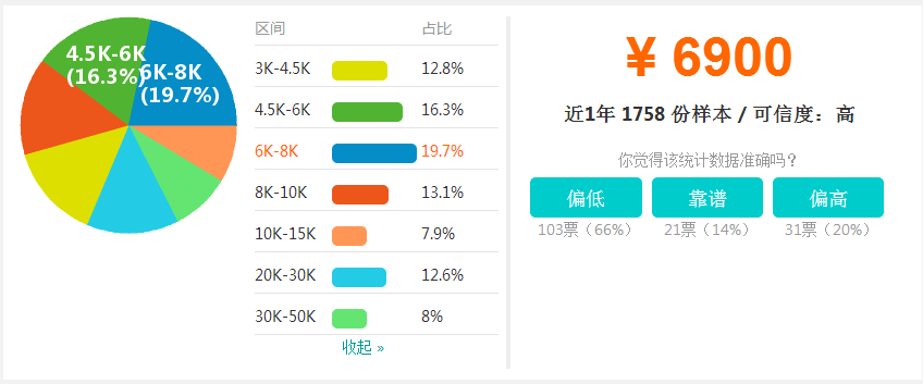 考過的同學(xué)最關(guān)注的無(wú)非是證書能帶來(lái)的直接效益,升職加薪是每個(gè)房估人想要達(dá)到的直接效果,但是目前市場(chǎng)上房地產(chǎn)估價(jià)師行業(yè)的薪資怎么樣,我們一起來(lái)扒一扒。根據(jù)職友集網(wǎng)站招聘信息來(lái)看,平均薪資在6K-8K的人數(shù)居多,占到19.7%。其次是4.5K-6K,占到16.3%。以下數(shù)據(jù)可以直觀的看出薪資占比。