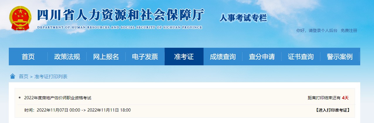 海南2022年房地產(chǎn)估價師考試準考證打印時間:11月8-13日