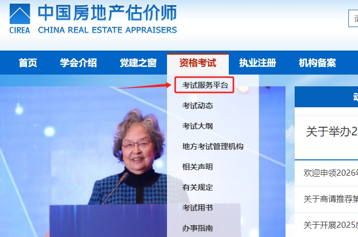 中國房地產估價師官網(網址為http://www.cirea.org.cn/)