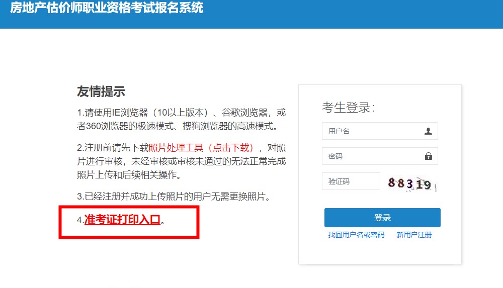 準(zhǔn)考證打印入口:“房地產(chǎn)估價(jià)師資格考試網(wǎng)上報(bào)名系統(tǒng)”