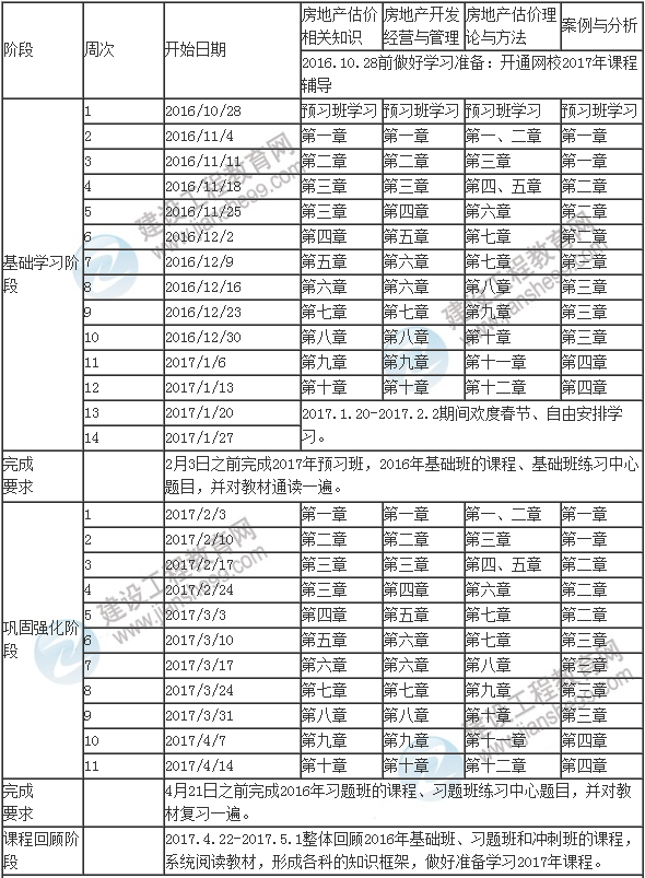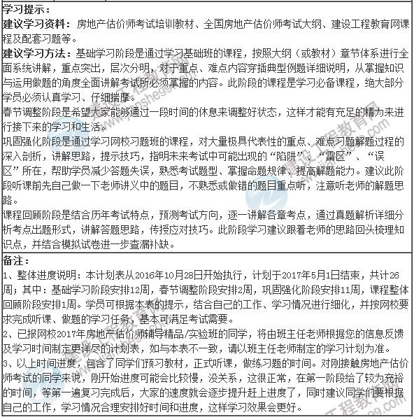 2017年房地產(chǎn)估價(jià)師預(yù)習(xí)階段學(xué)習(xí)計(jì)劃表
