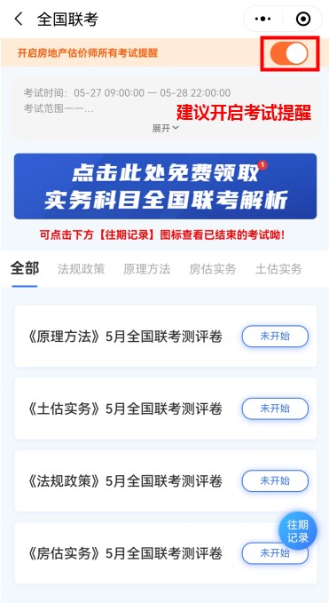 建議開通考試提醒,避免錯(cuò)過房地產(chǎn)估價(jià)師考試。
