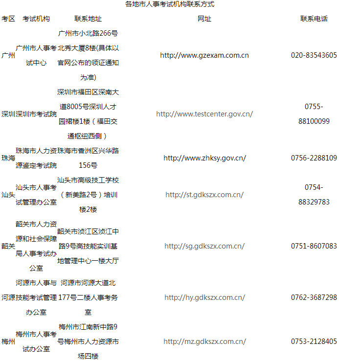 六、其他事項:各地市考區(qū)考生的證書發(fā)放事項請咨詢當(dāng)?shù)乜荚嚈C(jī)構(gòu)(聯(lián)系方式見附件)。