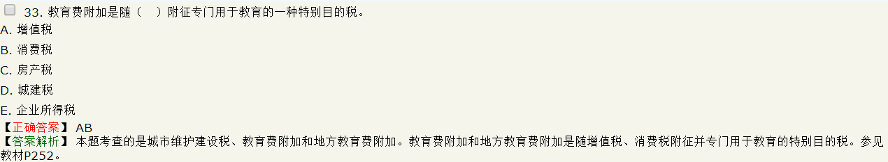 【解析】本題考查的是城市維護(hù)建設(shè)稅、教育費附加和地方教育費附加。教育費附加和地方教育費附加是隨增值稅、消費稅附征并專門用于教育的特別目的稅,以各單位和個人實際繳納的增值稅、消費稅的稅額為計征依據(jù),分別與增值稅、消費稅同時繳納。參見教材P252。