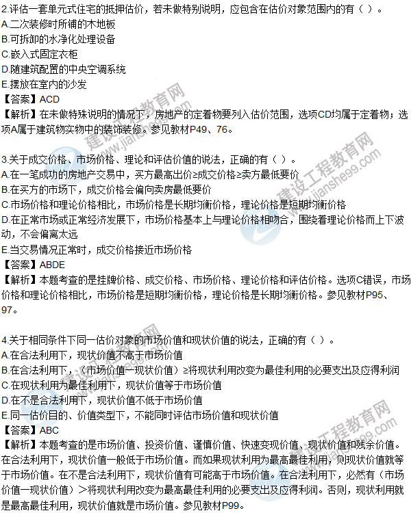 2016年房估《理論與方法》試題及答案解析多選1-15
