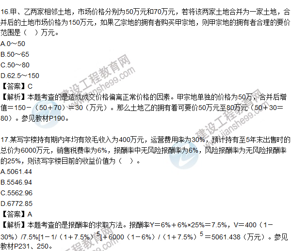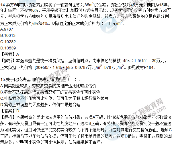 2016年房地產估價師《房地產估價理論與方法》答案及解析由老師整理而成,部分網站未經許可擅自轉載、抄襲,造成內容有所缺失或錯誤,請大家以建設工程教育網發(fā)布為準!(點擊進入試題討論區(qū) >> 就著試題咱們聊聊?。?span style="color:#ffffff">