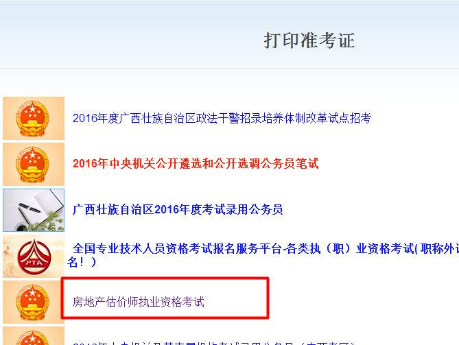 廣西2016年房估產(chǎn)估價(jià)師準(zhǔn)考證打印入口: