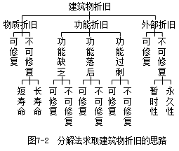 先把建筑物折舊分成:物質(zhì)折舊、功能折舊和外部折舊,分別測算,再加總求取建筑物折舊。