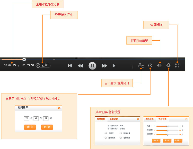 點擊可切換課件播放形式,包括:視頻、音頻和三分屏三種形式。