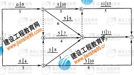 C.工作3~7的總時差與自由時差相等 D.工作l~2與工作1~3的自由時差相等