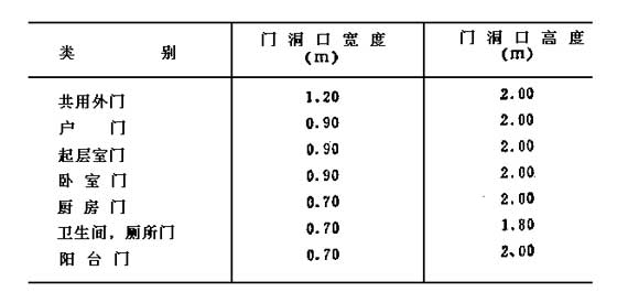 各部位門洞口的最小尺寸 表2.9.5