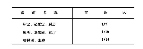 第4.1.2條 直接采光房間的窗洞口面積與該房間地面面積之比(窗地比)不應(yīng)小于表4.1.2的規(guī)定。