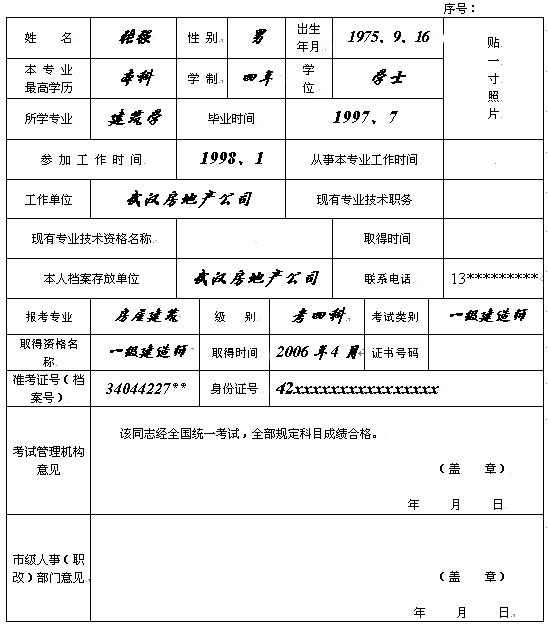 注:1、本表用鋼筆或簽字筆填寫,一式兩份,分存考生人事檔案和發(fā)證機關。