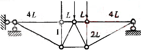 2.如圖為某桁架的計算簡圖,各桿件長度及節(jié)點力如圖中所示,其中桿1的內(nèi)力為()。