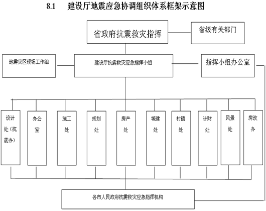 建設(shè)廳地震應(yīng)急協(xié)調(diào)組織體系框架示意圖見(jiàn)附錄8.1