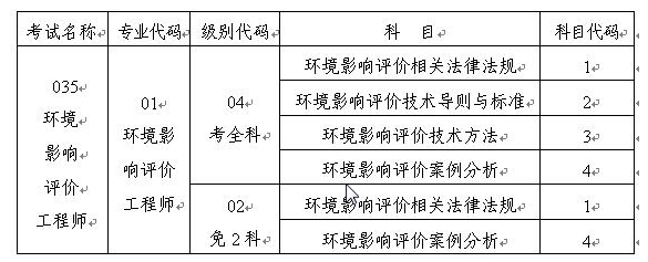 四、環(huán)境影響評價工程師職業(yè)資格考試名稱、級別、專業(yè)及考試科目代碼表。