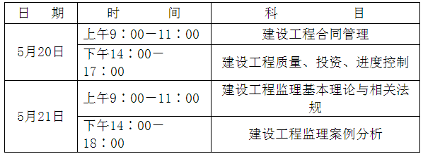 考試定于5月20日至21日舉行,考試科目和具體時(shí)間為: