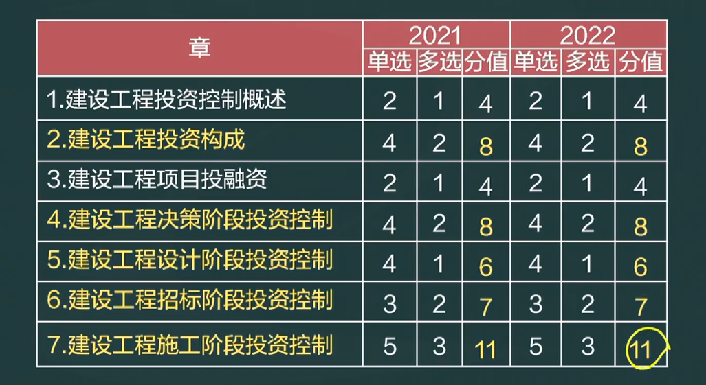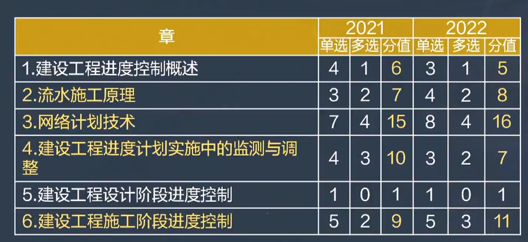 2021年-2022年監(jiān)理工程師土建控制分值分布