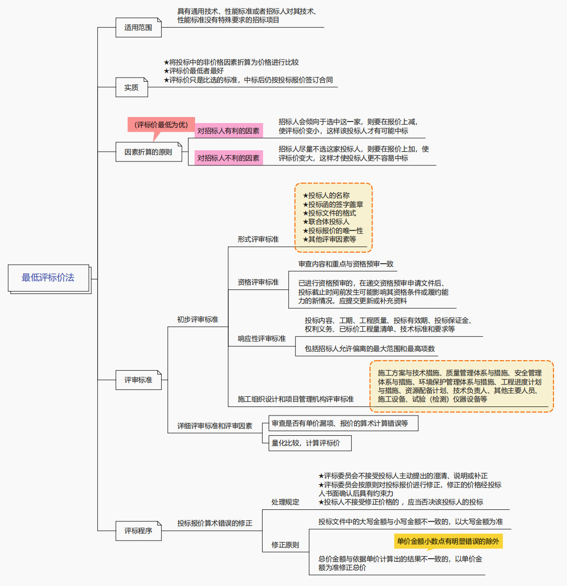 監(jiān)理工程師合同管理最低評(píng)標(biāo)價(jià)法思維導(dǎo)圖