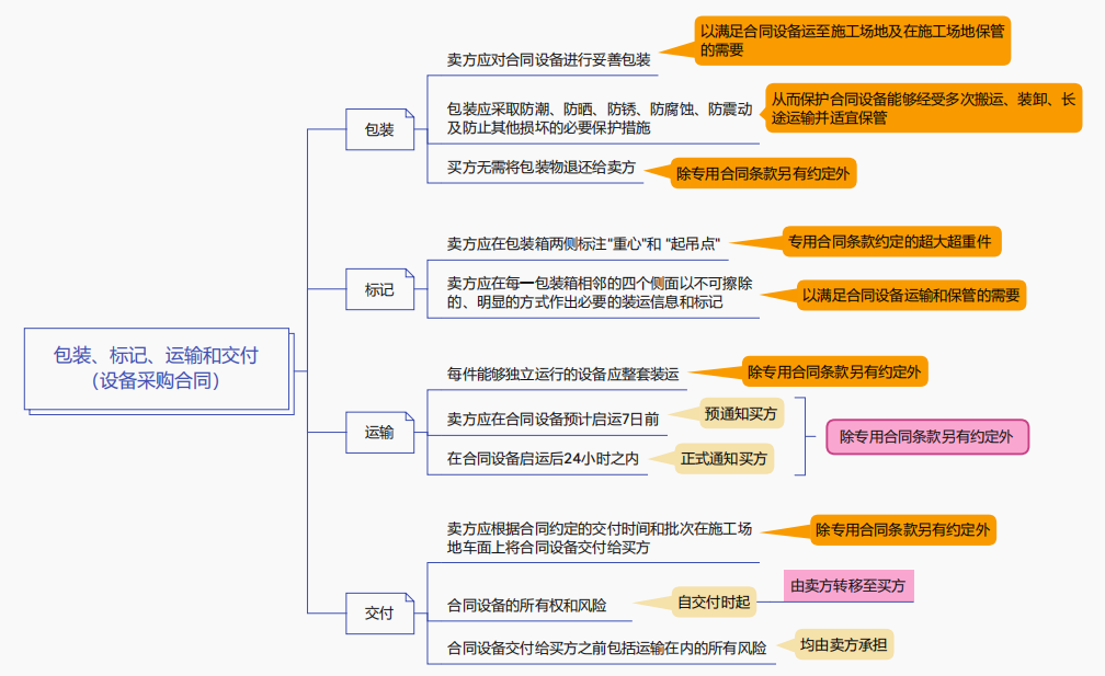 監(jiān)理工程師合同管理包裝、標(biāo)記、運輸和交付(設(shè)備采購合同)思維導(dǎo)圖