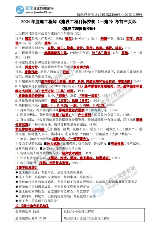 2024年監(jiān)理工程師土建案例考前三頁(yè)紙