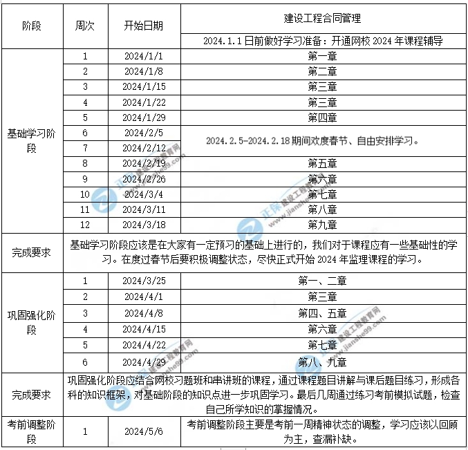 - · 2024年監(jiān)理工程師土建案例學(xué)習(xí)計(jì)劃時(shí)間表(1-5月)