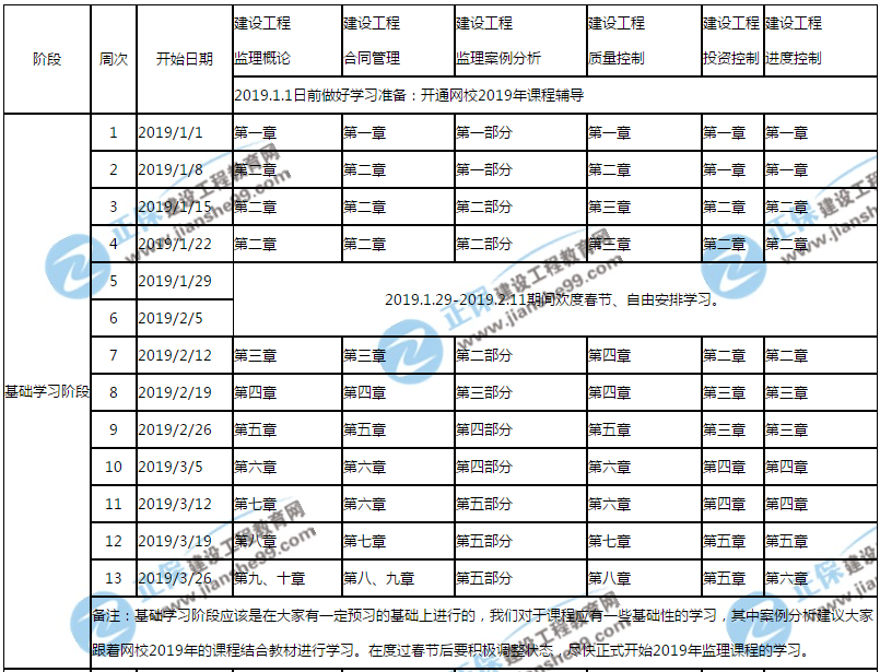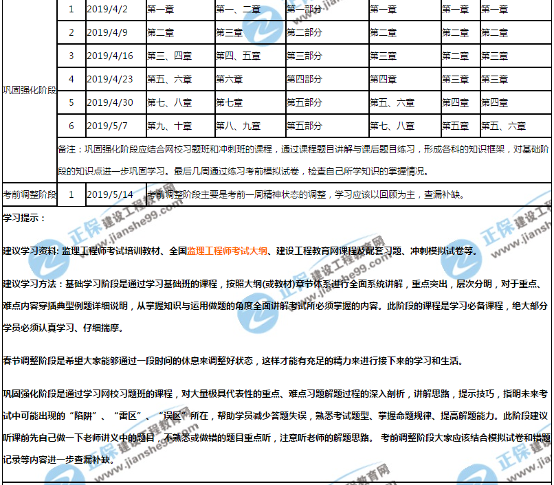 2019年監(jiān)理工程師考試備考學(xué)習(xí)計劃表(1-5月)