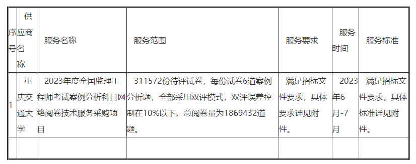 2023年監(jiān)理案例分析科目網(wǎng)絡閱卷技術服務采購項目中標公告