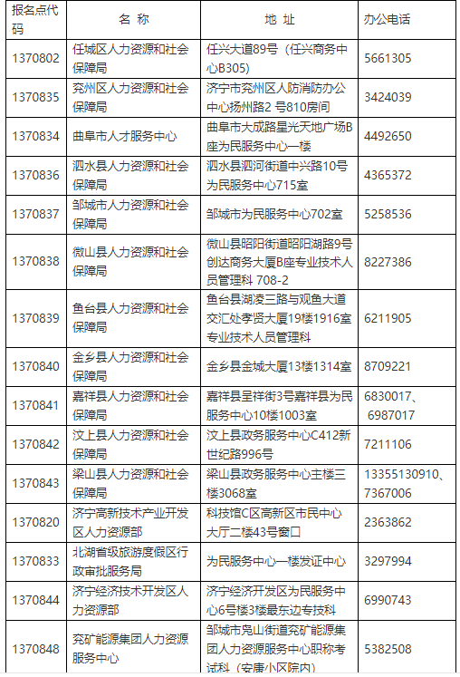 各縣(市、區(qū))人力資源社會保障局、濟(jì)寧高新技術(shù)產(chǎn)業(yè)開發(fā)區(qū)人力資源部、濟(jì)寧經(jīng)濟(jì)技術(shù)開發(fā)區(qū)人力資源部、北湖省級旅游度假區(qū)行政審批服務(wù)局、兗礦能源集團(tuán)人力資源服務(wù)中心: