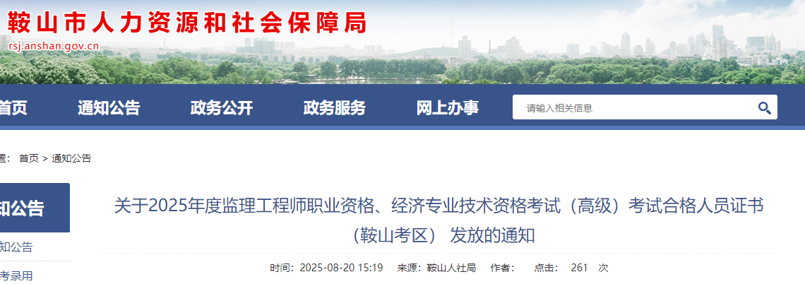 關(guān)于2025年度監(jiān)理工程師職業(yè)資格、經(jīng)濟專業(yè)技術(shù)資格考試(高級)考試合格人員證書(鞍山考區(qū))發(fā)放的通知
