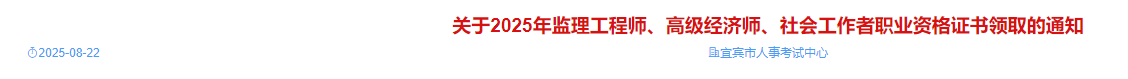 四川宜賓考點(diǎn)2025年監(jiān)理工程師證書(shū)領(lǐng)取通知已發(fā)布,詳情如下: