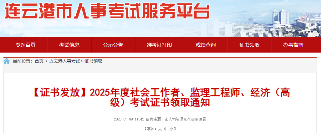 2025年度社會(huì)工作者、監(jiān)理工程師、經(jīng)濟(jì)(高級(jí))考試證書領(lǐng)取通知