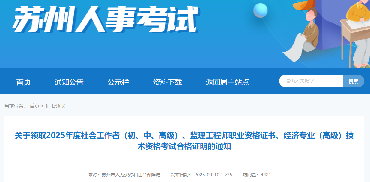 2025年度社會(huì)工作者(初、中、高級(jí))、監(jiān)理工程師職業(yè)資格證書(shū)、經(jīng)濟(jì)專(zhuān)業(yè)(高級(jí))技術(shù)資格考試合格證明已經(jīng)開(kāi)始發(fā)放,具體發(fā)放事項(xiàng)如下: