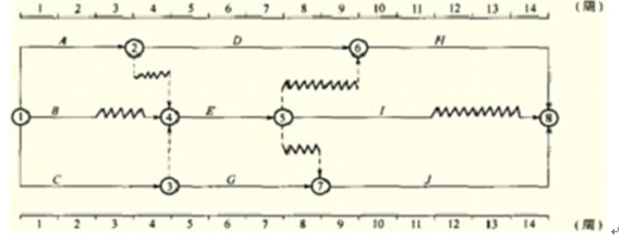 14、某工程雙代號時標網(wǎng)絡(luò)計劃如下圖所示:
