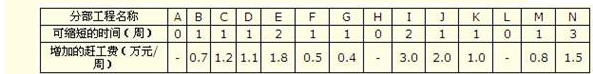 各工作可以縮短的時(shí)間及其增加的趕工費(fèi)