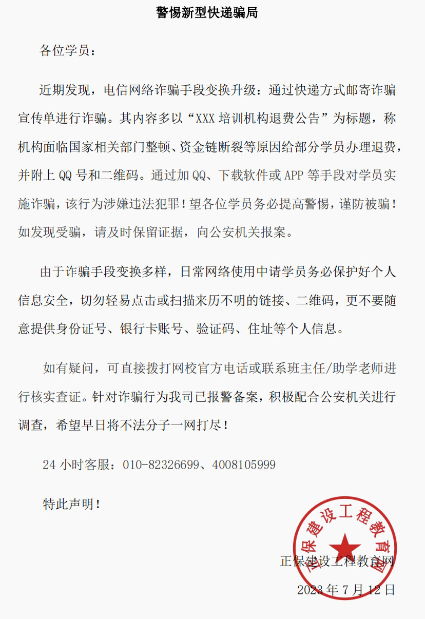 建設(shè)工程教育網(wǎng)反詐騙聲明
