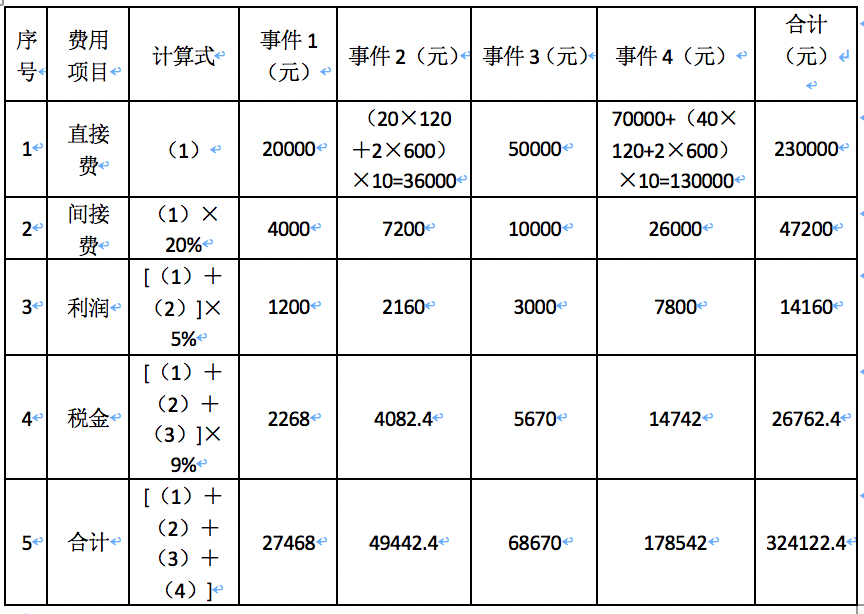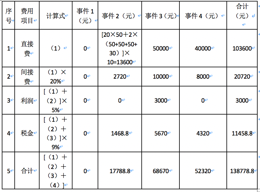 具體費(fèi)用索賠組成如下(不是采分點(diǎn),分析題目用,暫不公布此表格):