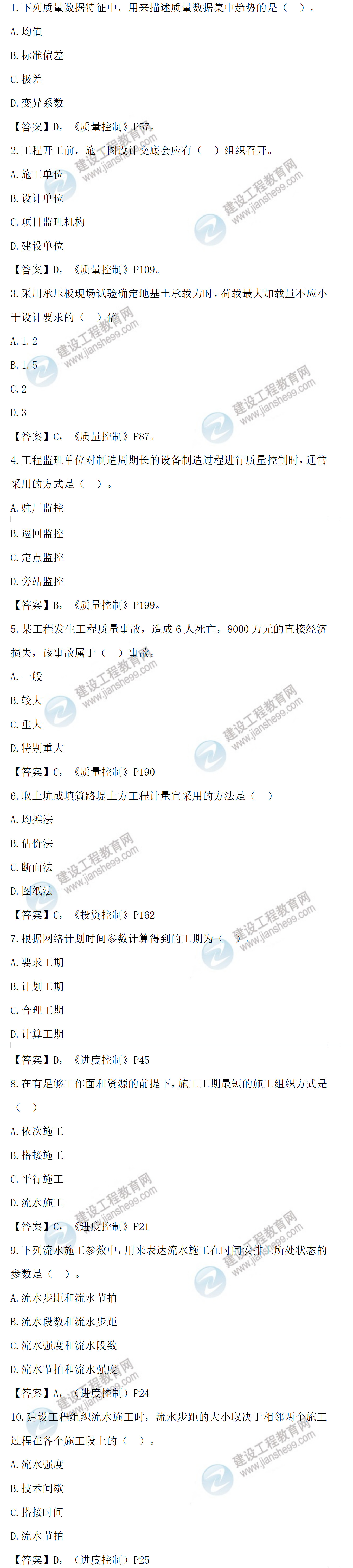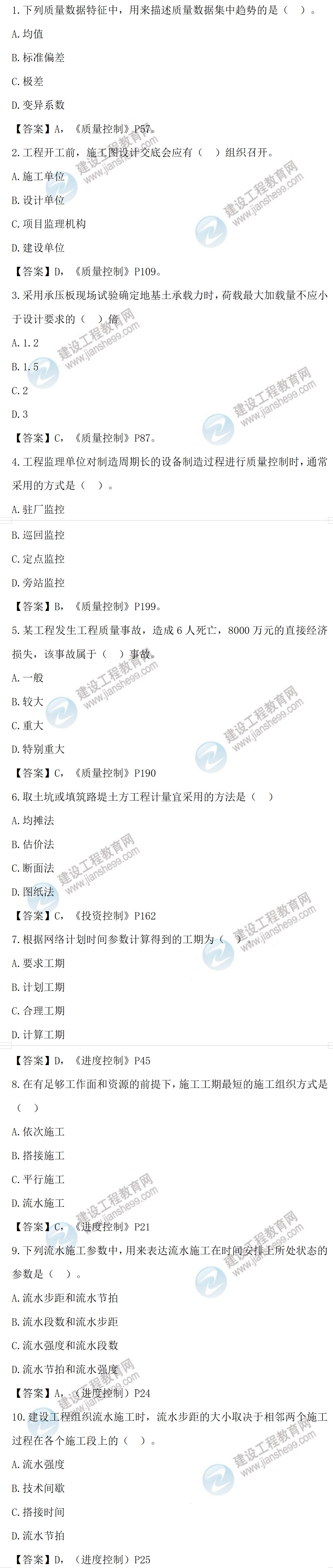 2022年監(jiān)理工程師目標(biāo)控制土建考試答案1-10題(補(bǔ)考)