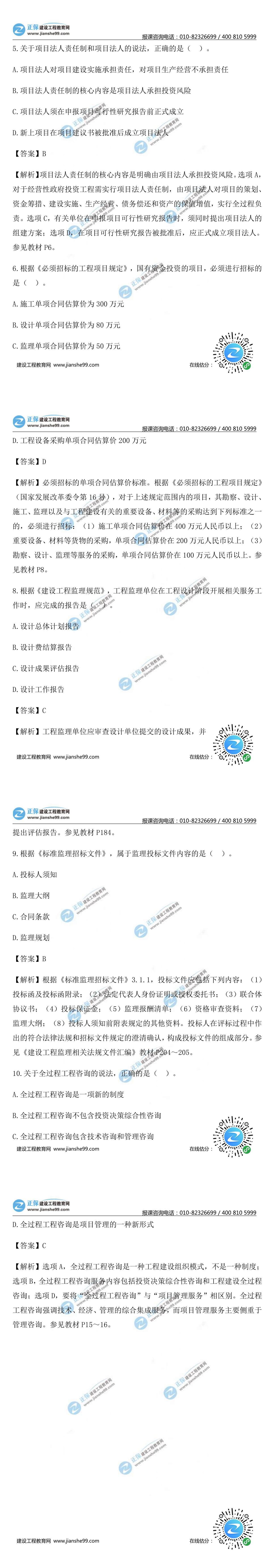 2021年監(jiān)理工程師理論和法規(guī)試題及答案1-10題,建設工程教育網(wǎng)考后將會根據(jù)學員反饋進行匯總,考試過后,廣大考生最關心的問題莫過于2021年監(jiān)理工程師理論和法規(guī)試題及答案1-10題了,網(wǎng)校會及時匯總2021年監(jiān)理工程師理論和法規(guī)試題及答案分享給大家,并且做出答案解析,希望能為廣大監(jiān)理考生朋友帶來幫助。