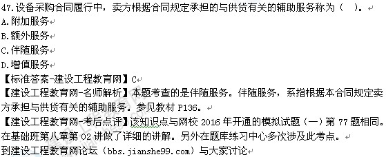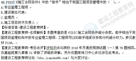 2016年監(jiān)理工程師《建設(shè)工程合同管理》答案及解析由老師整理而成,部分網(wǎng)站未經(jīng)許可擅自轉(zhuǎn)載、抄襲,造成內(nèi)容有所缺失或錯誤,請大家以建設(shè)工程教育網(wǎng)發(fā)布為準(zhǔn)!