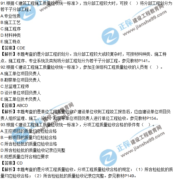 2018年監(jiān)理《建設(shè)工程質(zhì)量、投資、進(jìn)度控制》試題及答案多選(91-100)